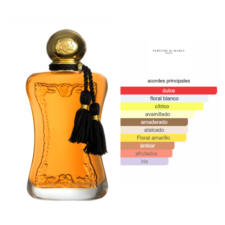- Notas de Fondo: Vainilla, Ámbar y Sándalo.